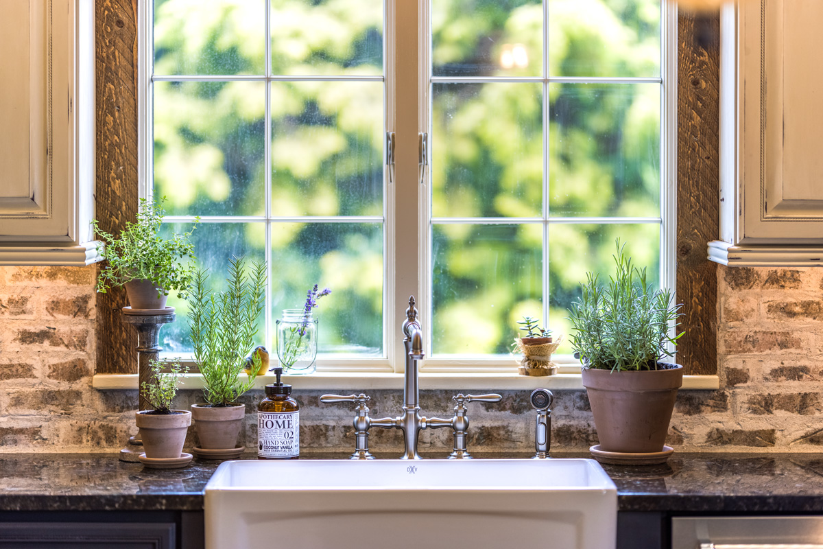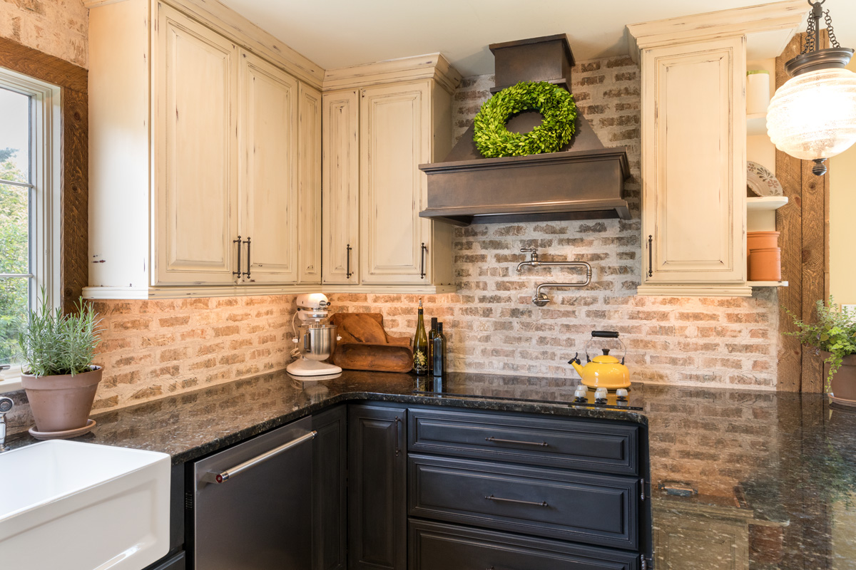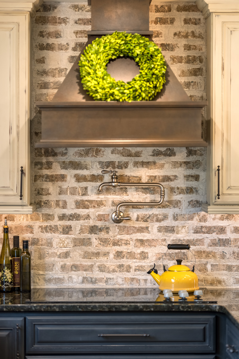 A: "The kitchen was designed around three things - the right exhaust hood, a quality farmhouse sink, and the perfect old brick. Glen-Gery’s wide selection of brick made finding the perfect shade a breeze and the installation system is amazingly simple. I knew if I chose Glen-Gery that the finished look would be exactly what I wanted - no unevenness and a gorgeous assortment of color variations."